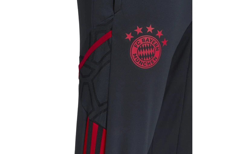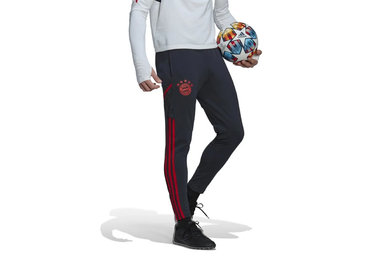Een FC Bayern München sportbroek die is gemaakt met gereycled materiaal.