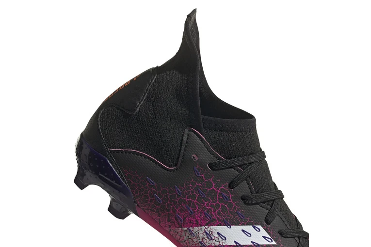 Je kunt je stempel pas op de sport drukken als je de sport z’n stempel op jou laat drukken. Elke wedstrijd is een kans om grootser en beter te worden. Overheersender. Laat jouw natuurkracht de vrije teugel in de Predator Freak. Deze junior adidas voetbalschoenen voor stevige velden houden je stabiel met een ondersteunend halfhoog design. 3D-geprinte Demonscale-elementen domineren het synthetische bovenwerk om je balbeheersing te verbeteren.
